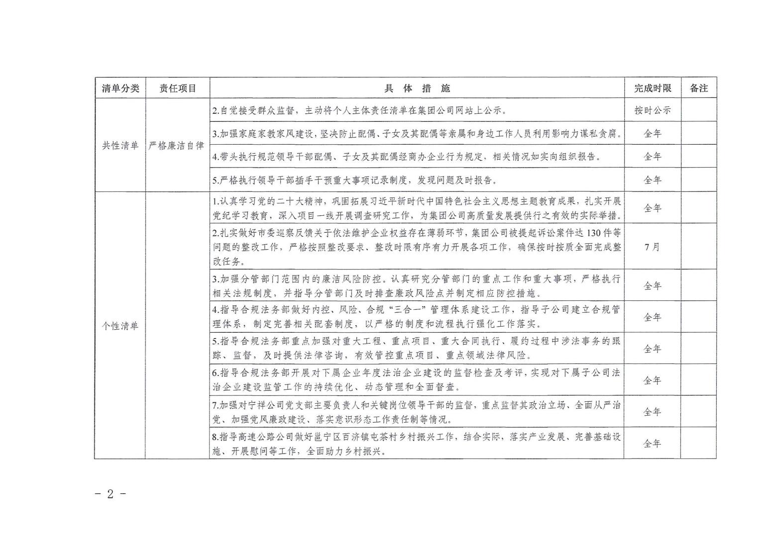 領(lǐng)導(dǎo)班子其他成員2024年度黨風(fēng)廉政建設(shè)“一崗雙責(zé)”清單(五)