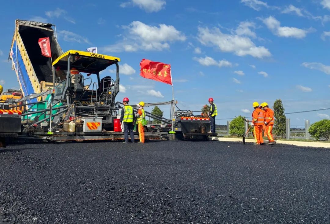 上橫高速公路完成首段瀝青下面層試驗(yàn)段攤鋪?zhàn)鳂I(yè)