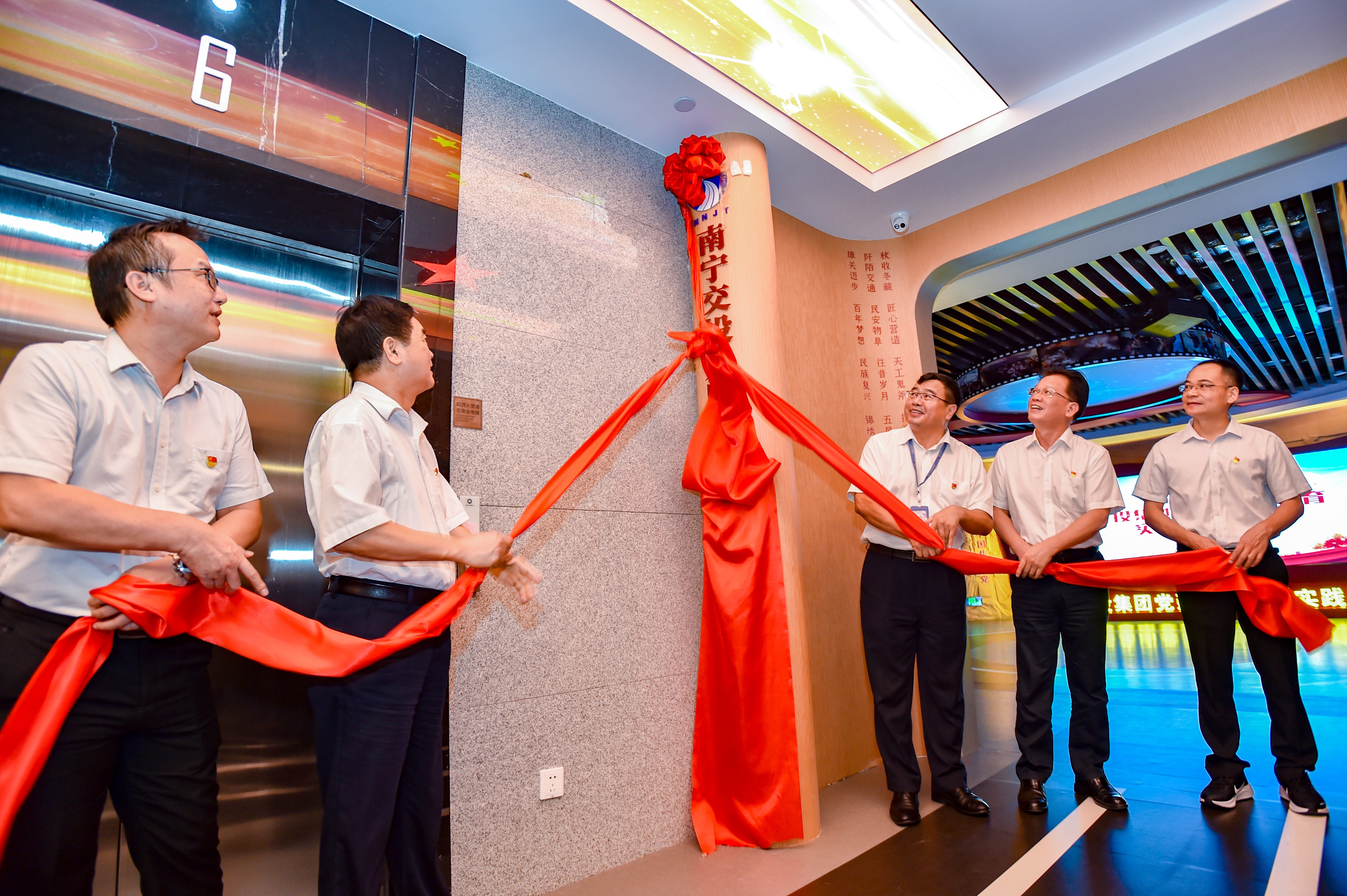 2021年7月1日下午,南寧交投集團(tuán)新老黨員身著白襯衫,佩戴閃亮的黨員徽章,等候在集團(tuán)公司辦公樓10樓黨建學(xué)習(xí)教育實(shí)踐基地門口,準(zhǔn)備參加“初心如磐奔未來” 黨史學(xué)習(xí)教育暨黨建學(xué)習(xí)教育實(shí)踐基地(以下簡稱黨建基地)啟用儀式活動?;貎?nèi)外此起彼伏的興奮交談聲和一張張熱情洋溢的笑臉,讓這個首次啟用的黨建基地凝聚滿滿的正能量。